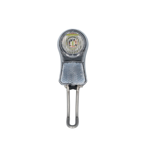 Elegante compacte Dresco batterij koplamp Swift 2.0 met 1 krachtige superheldere LED. De Dresco koplamp heeft een geïntegreerde reflector en twee verschillende schakelbare lichtsterktes (100% en 50%) en uit functie. Schakelaar op de bovenkant van de lamp. Werkt op 3 meegeleverde AAA/LR03 batterijen. Inclusief lamphaak voor bevestiging op kroonbout van de fiets. Met E-keur.