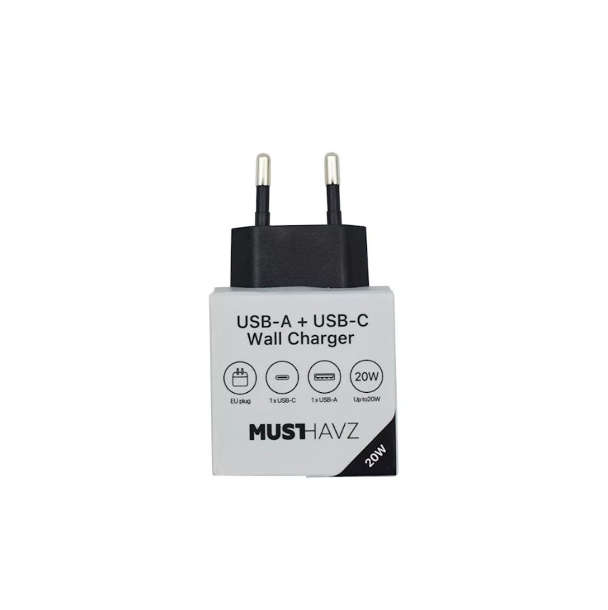 Musthavz to Go 2 Port PD Charger USB-A + USB-C 20W, black